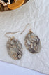 Spring is here! Add a soft touch to your look with these lightweight, oval dangle earrings in brown and light cream marble swirl tones.