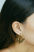 This Amazonite half donut funky shape earring features a raw brass teardrop accent. It is a Paisclayco bestseller, making it a popular and stylish addition to any outfit. The unique shape adds a playful touch to any look.