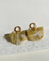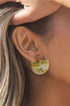 Polymer clay crafted to mimic the beauty of green Amazonite, our gemstone-inspired dangle earrings are a stunning addition to any jewelry collection. Featuring a gold-plated hallow circle post, these lightweight earrings offer nature-inspired elegance perfect for all-day wear. Elevate your style with this unique pair of earrings from Paisclayco.