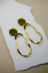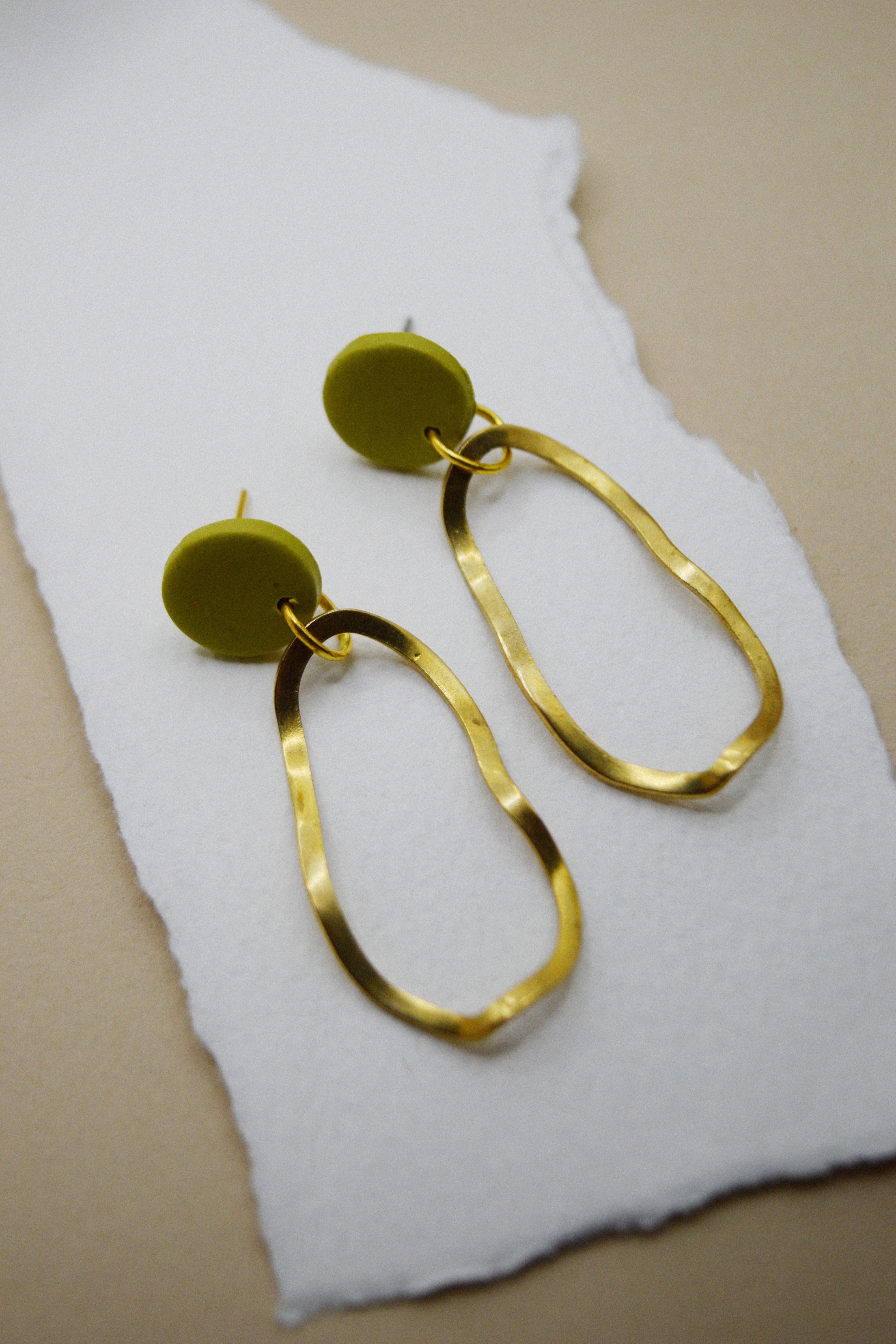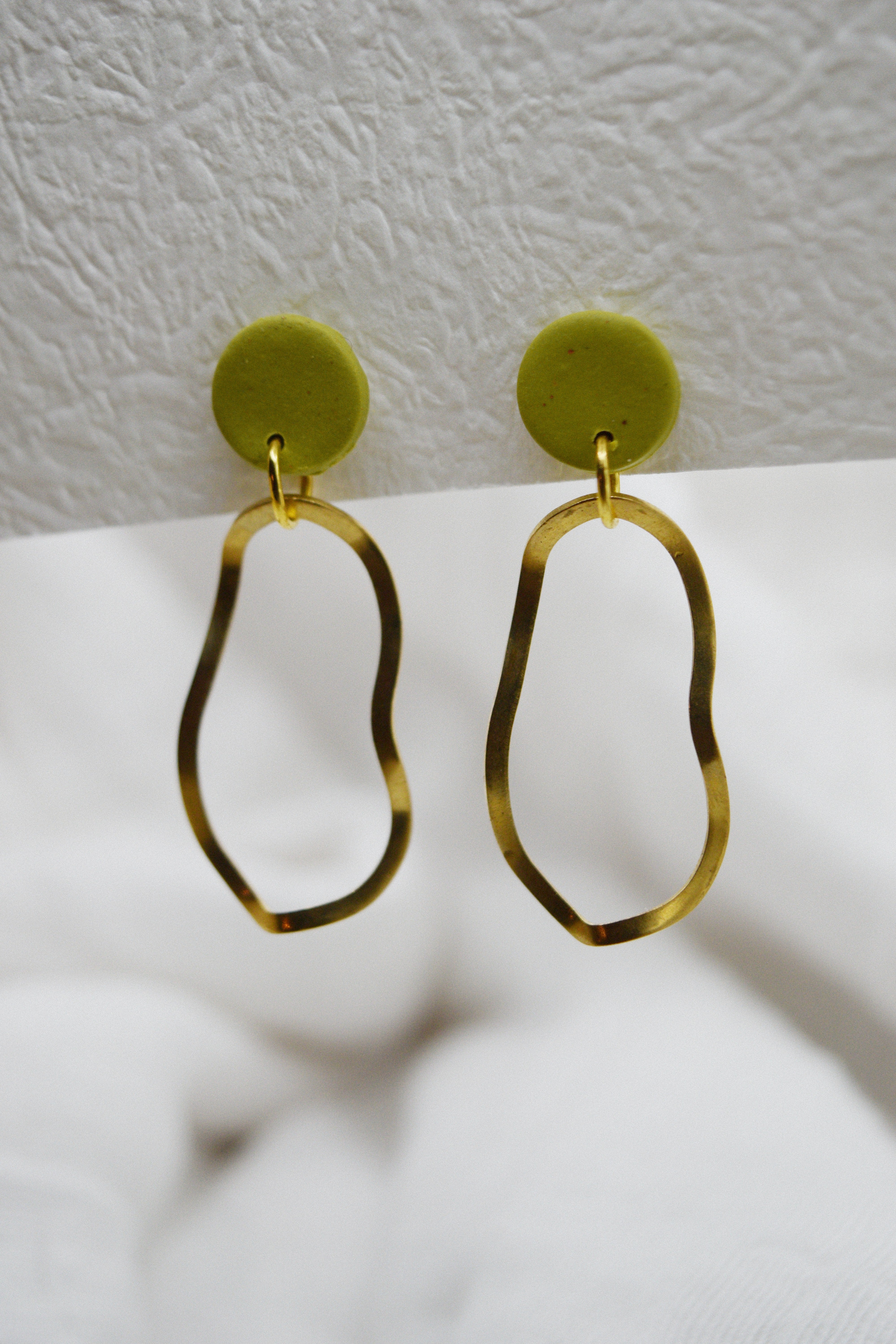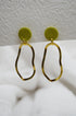 Introducing our bestselling Wavy Hoop Dangle Earrings with a light chartreuse stud. Elevate any outfit with these trendy earrings. A must-have for any fashion-forward individual.